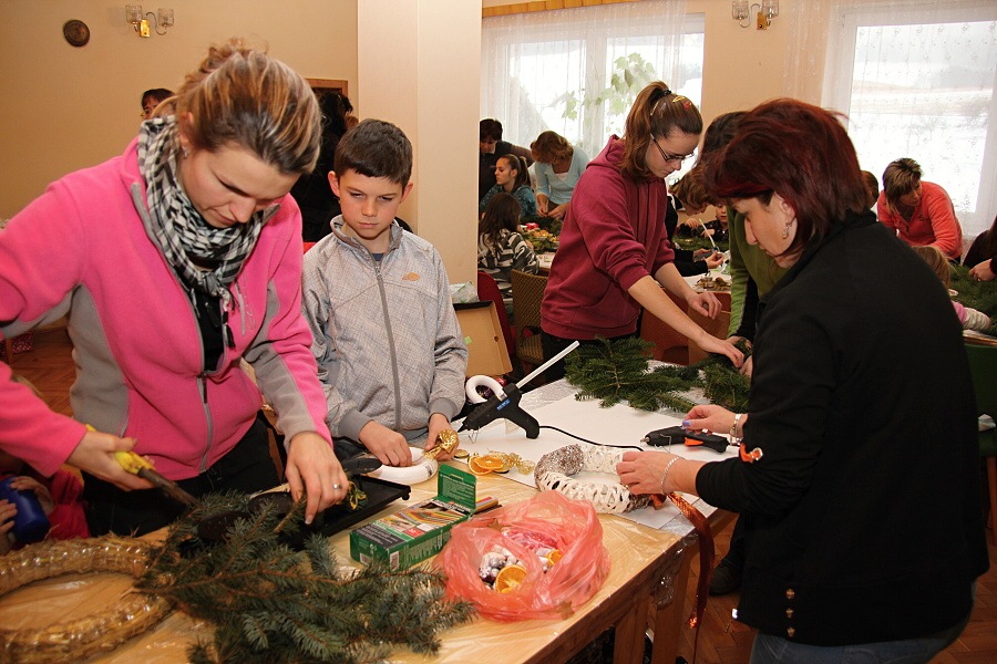 | Obecní úřad v Levínské Olešnici ve spolupráci s místní Mateřskou školou v sobotu dne 30.11.2013 uspořádal tvořivé adventní odpoledne. Převážná část materiálu na výrobky byla zajištěna a kdo chtěl, mohl si přinést nějaký vlastní materiál. Zasedací místnost KD v Levínské Olešnici byla zcela zaplněná , protože na tuto akci přišlo tvořit 37 lidiček včetně dětí, což nás organizátory moc potěšilo. Hlavní náplní byla výroba adventních věnců či závěsných dekorací. Pro inspiraci ostatním paní Milenka Urbanová vytvořila několik výrobků. Na závěr tvoření bylo menší pohoštění, kde jsme u kávy a výborných placek zhodnotily toto předvánoční tvoření. A aby jsme se dostatečně naladily na začínající advent, tak mám po celé tvoření zněly vánoční koledy. Adventní tvoření 2013 se snad vydařilo, krásné výrobky jistě byly chloubou na vánočním stole každé z nás. Chtěla bych poděkovat za pomoc paní ředitelce Mgr. Beatě Dundové a paní Mileně Urbanové a také všem ostatním, které napekly nějakou tu dobrotu ke kafíčku. Na další tvořivé setkání se těší Zdenka Nosková |